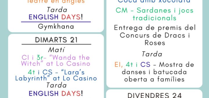 El 27 de març, coincidint amb l’últim dia del segon trimestre, els nens de cicle inicial i de cicle mitjà van gaudir d’un gran dia fent la mateixa activitat: preparar la mona de Pasqua,...