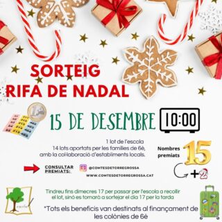 Benvolguts tots i totes!Aquest any, la rifa de Nadal de l’Escola Comtes de Torregrossa continua creixent. Tenim 17 premis per sortejar: 1 de l’escola, amb productes de l’Agrobotiga, i 16 més cedits altruistament per entitats...