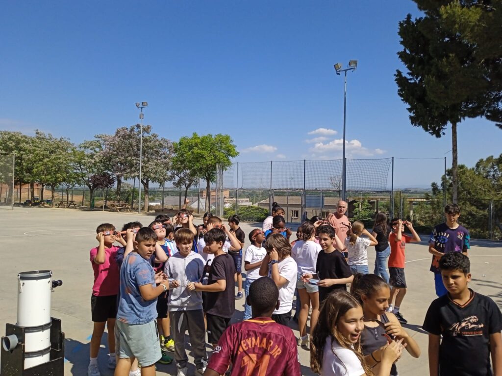 Ahir a la tarda, l’alumnat de sisè va gaudir d’una estona molt interessant amb el professor responsable de l’Observatori Astronòmic de l’Institut d’Alcarràs (OAIA), en Jose Manuel Pérez. Va fer una xerrada per aproximar els infants a tot allò relacionat amb els eclipsis; pròximament, en tindrà lloc un el 12 d’agost. També van tenir l’oportunitat d’observar el Sol amb unes ulleres homologades. Moltes gràcies per aquesta activitat tan enriquidora.